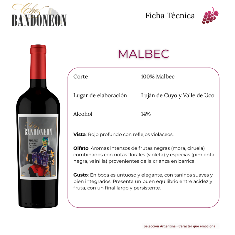 Che Bandoneón expresa el pulso del tango y la fuerza mendocina en una línea de vinos auténticos, elaborados con blends de Luján de Cuyo y Valle de Uco bajo la dirección de Leandro Azin.
