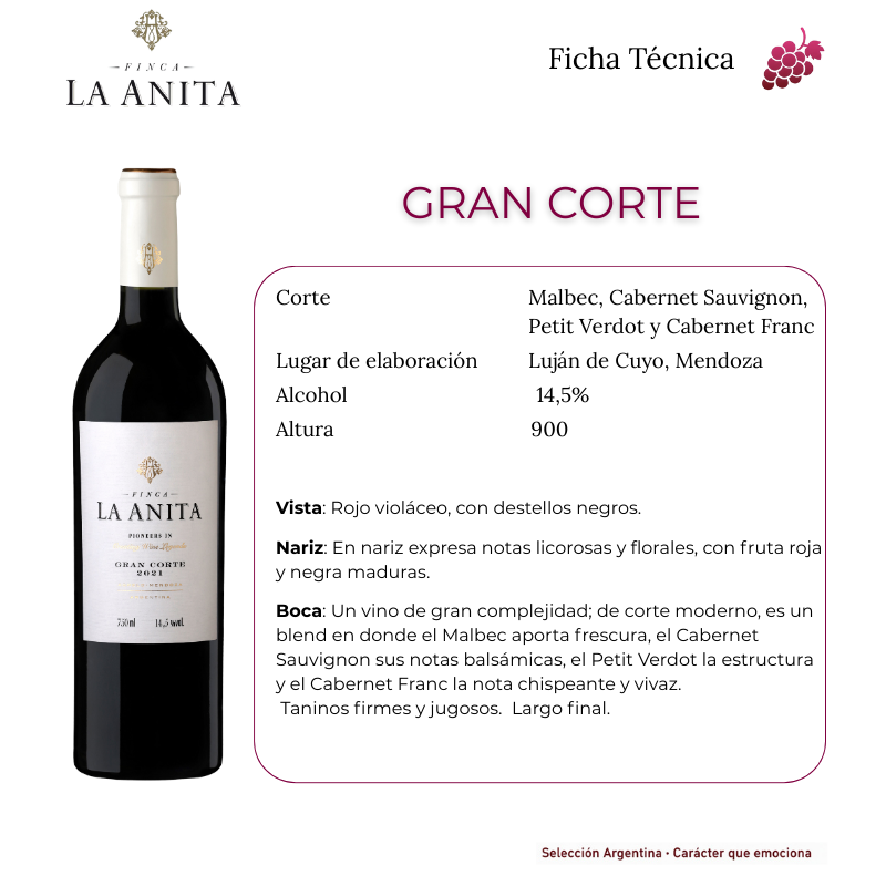 Pionera en Agrelo desde 1992, Finca La Anita apostó desde el inicio por vinos de alta gama, contribuyendo a posicionar esta zona como una de las más prestigiosas de Mendoza.